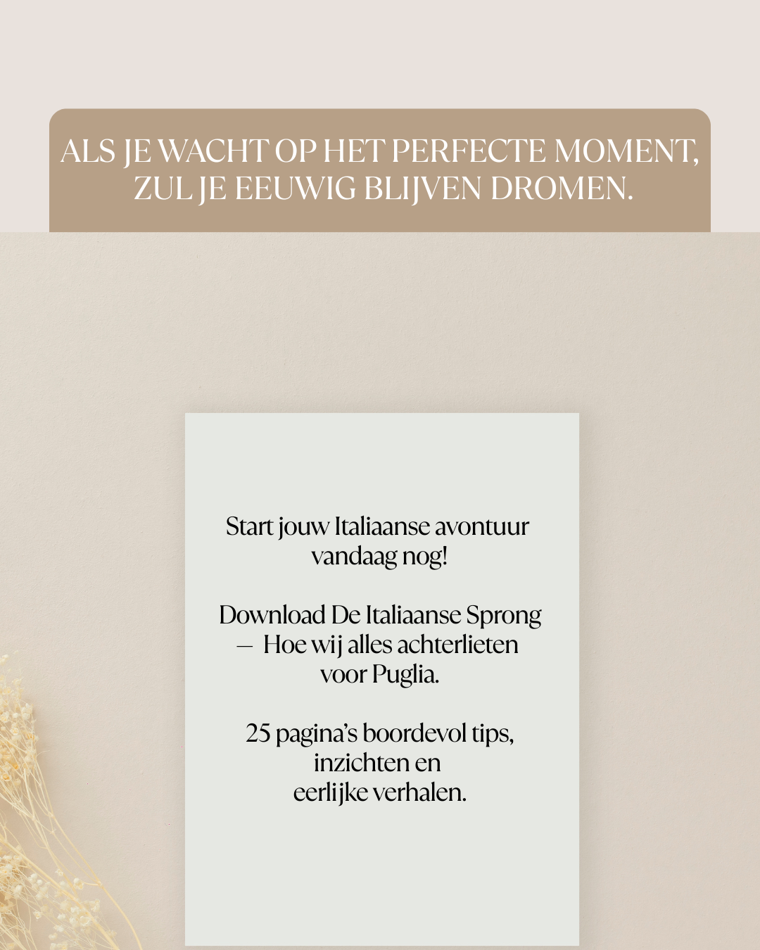 Dit is je kans om sneller, met minder stress, en beter voorbereid jouw eigen Italiaanse sprong te maken.